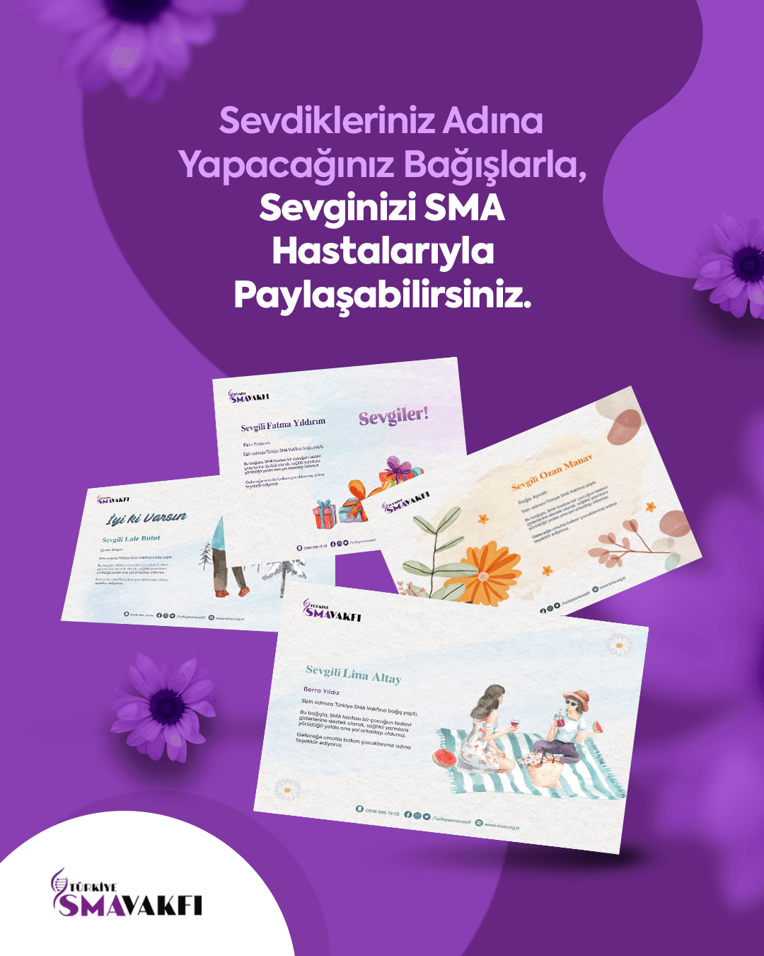 Sizlerde ‘sevdikleriniz adına’ yapacağınız sertifika bağışlarınızla SMA hastalarının yanında olabilir, onların mücadelelerine katkıda bulunabilirsiniz.