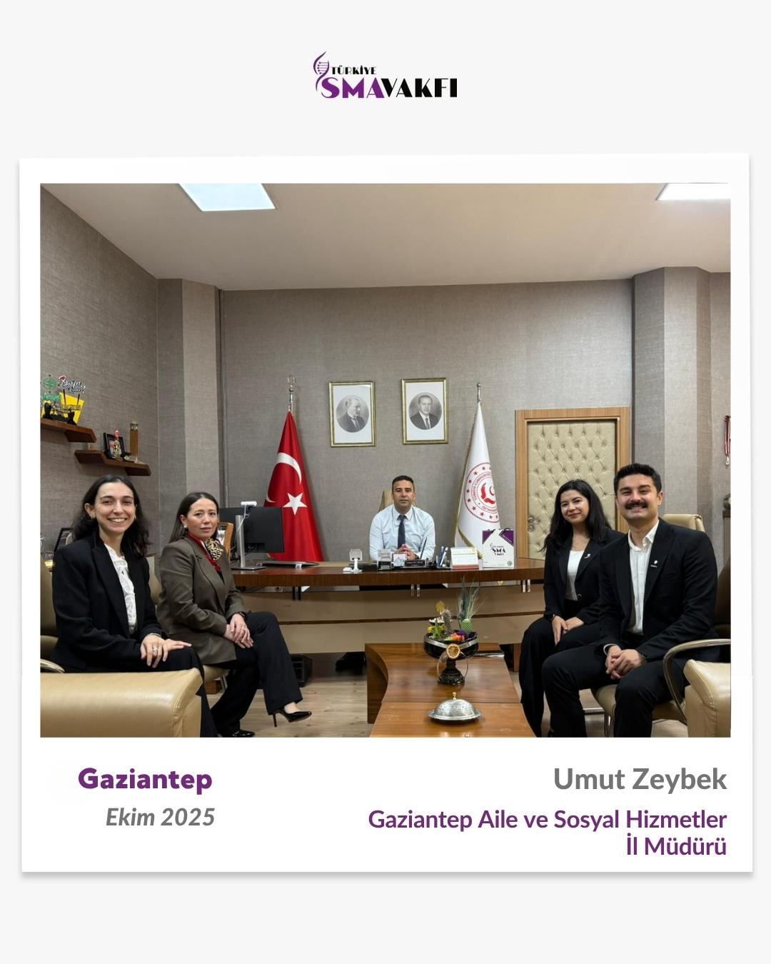 Türkiye SMA Vakfı olarak, Gaziantep Aile ve Sosyal Hizmetler İl Müdürü Umut Zeybek’i ziyaret ettik.