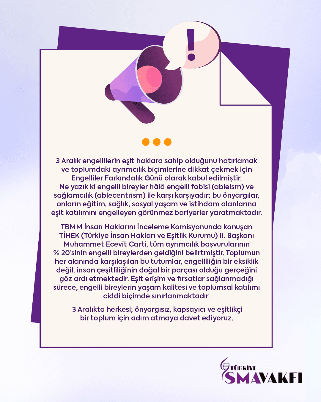 Tüm engelli bireylerin haklarına erişebildiği, kapsayıcı ve eşitlikçi bir toplum olduğumuz güzel günlere ulaşmak dileğiyle…