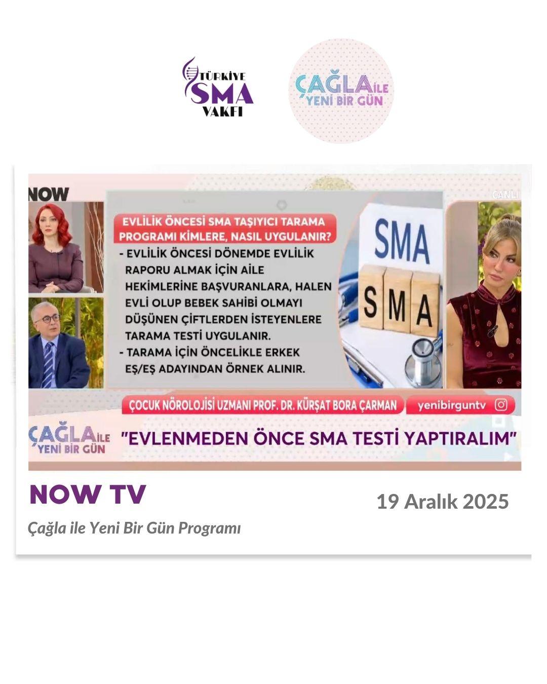 Başta NOW TV, Çağla ile Yeni Bir Gün Programı ve Çağla Şikel olmak üzere, SMA hastalığının görünür kılınmasına katkı sunan herkese teşekkür ederiz.