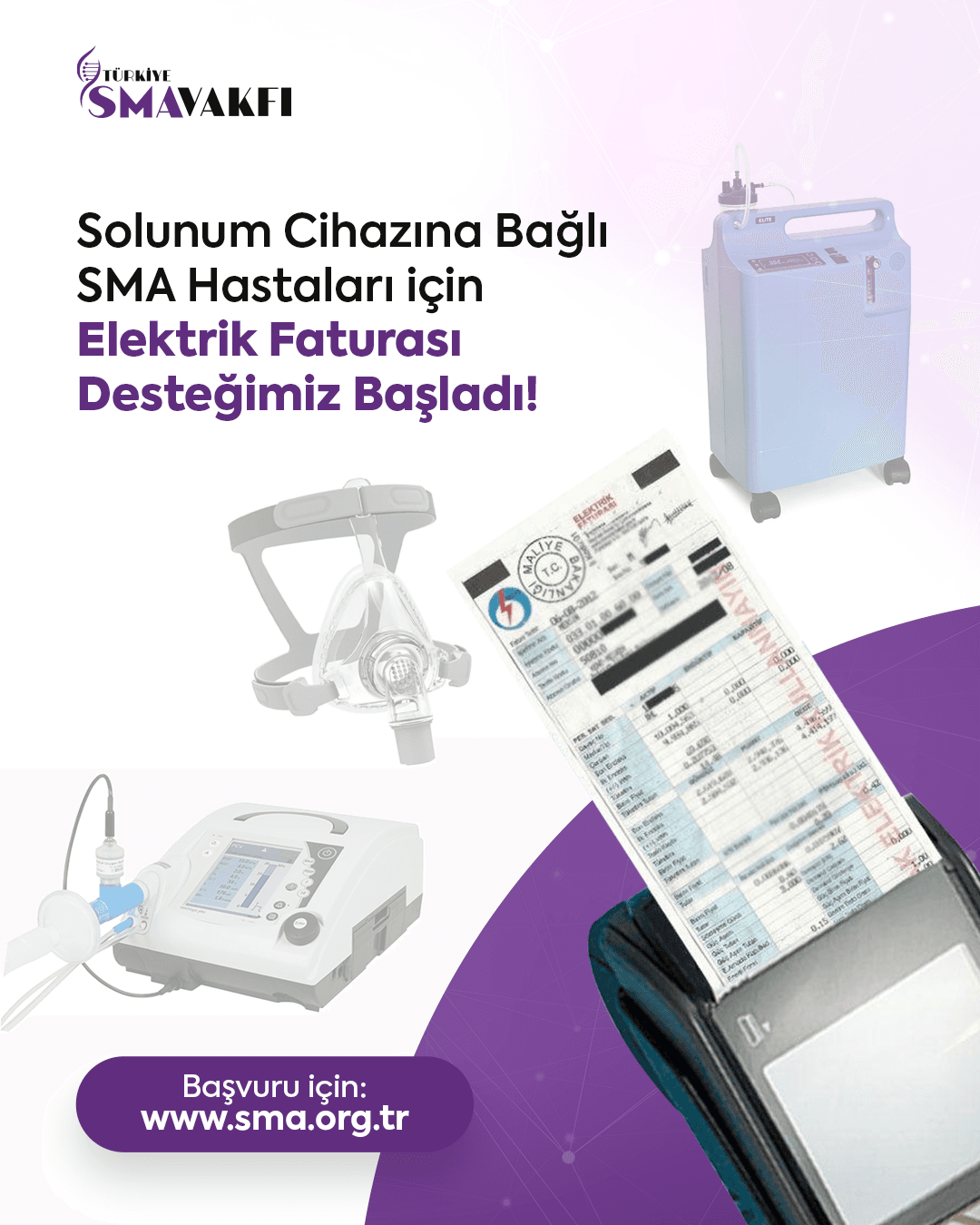 Solunum cihazına bağlı SMA hastaları için elektrik faturası desteğimiz başladı!