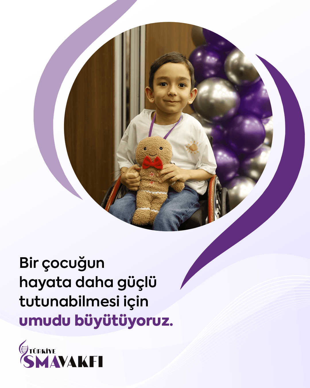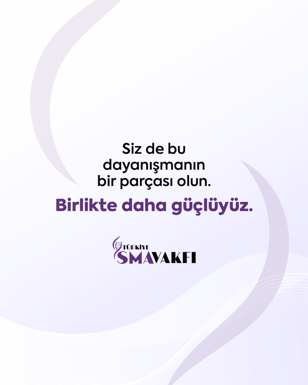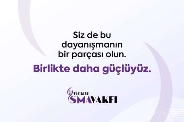 Türkiye SMA Vakfı olarak; SMA hastası bireylerin ve ailelerinin hayatlarına dokunmak, onlara daha güçlü bir gelecek inşa etmek için çalışıyoruz.Biliyoruz ki, Birlikte daha güçlüyüz. Siz de SMA hastalarının dayanışmalarına ortak olun, umudu birlikte büyütelim!